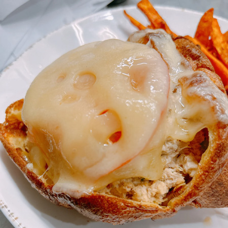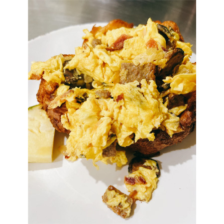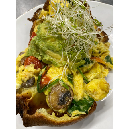 Our Fresh Baked Popovers Loaded with Scrambled Eggs and Farm Fresh Ingredients. We appreciate you not modifying the stuffed POPS as they are perfect the way they are.