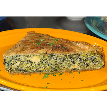 Includes a freshly toasted piece of garlic bread.